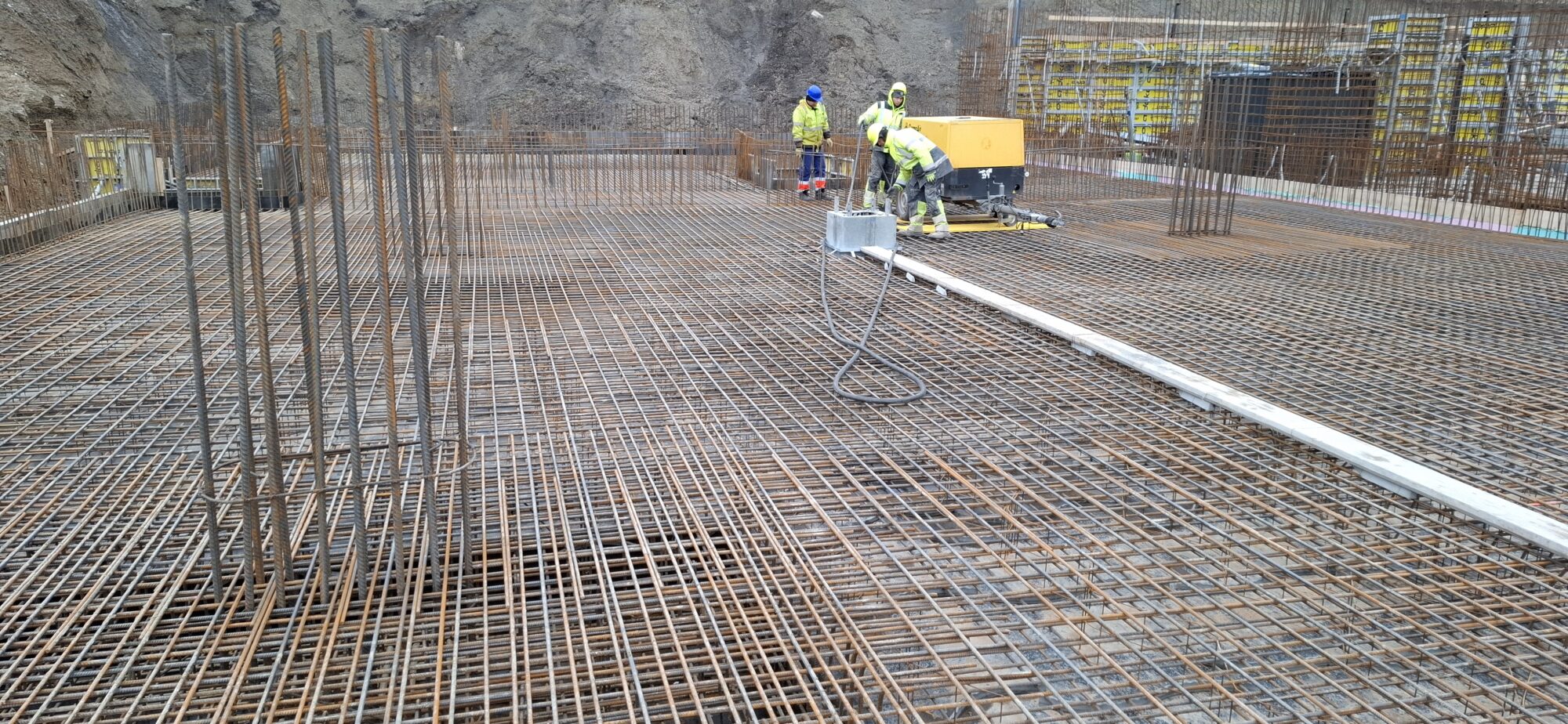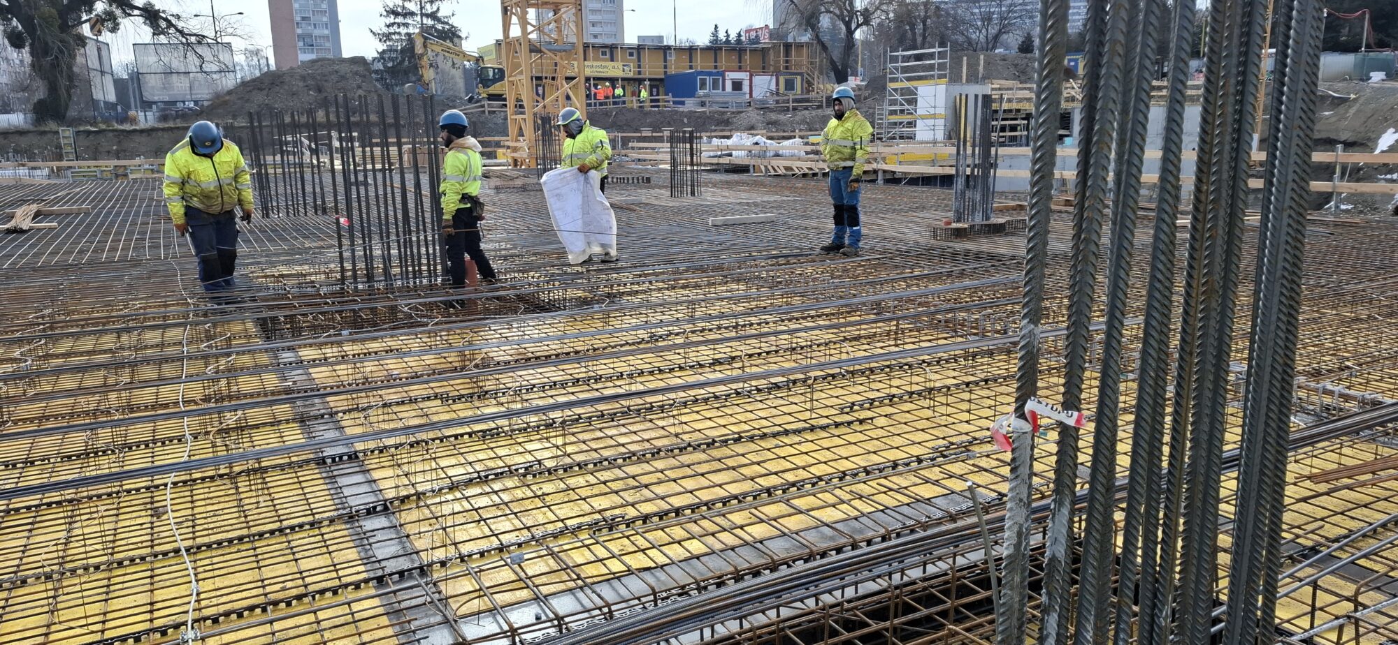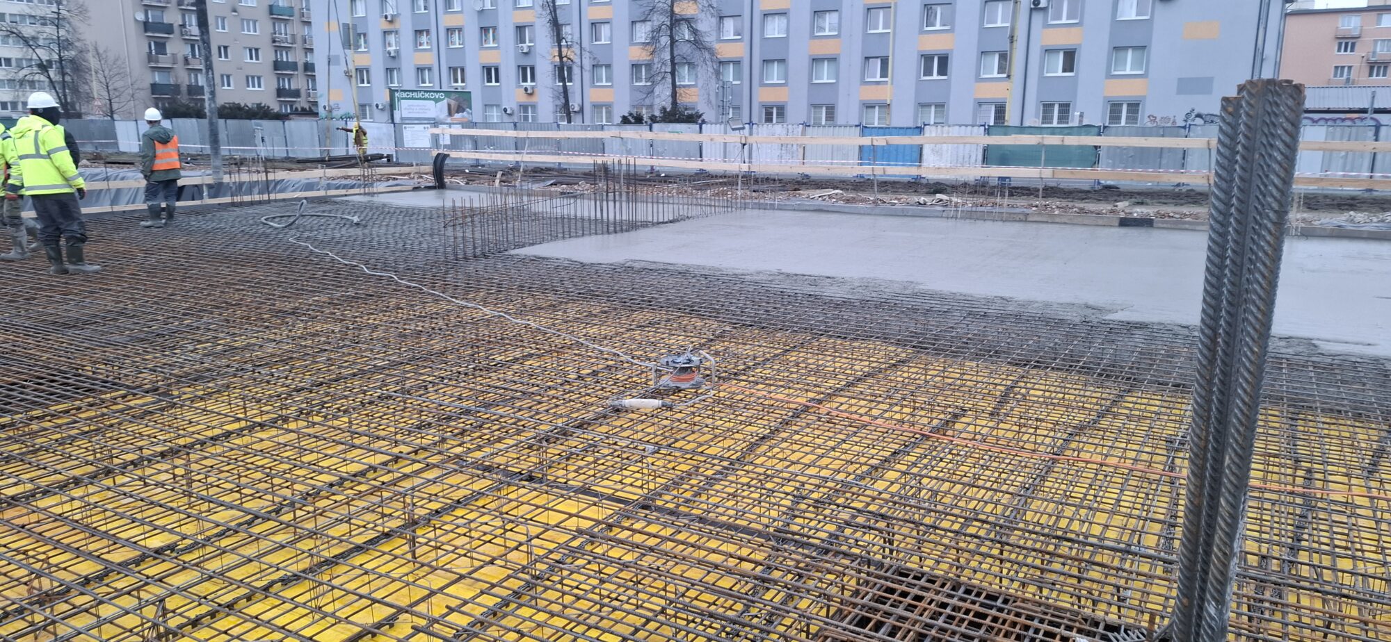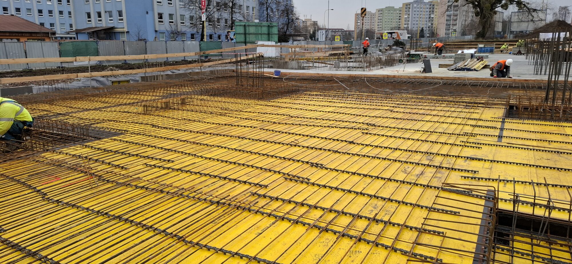 In Section A, concreting and reinforcement of the basement floor slabs are currently underway. On the lower levels, the gradual removal of slab formwork is in progress. In part of Section A, formwork and reinforcement works are also ongoing for the 5.2-metre-high walls of the first above-ground floor.
