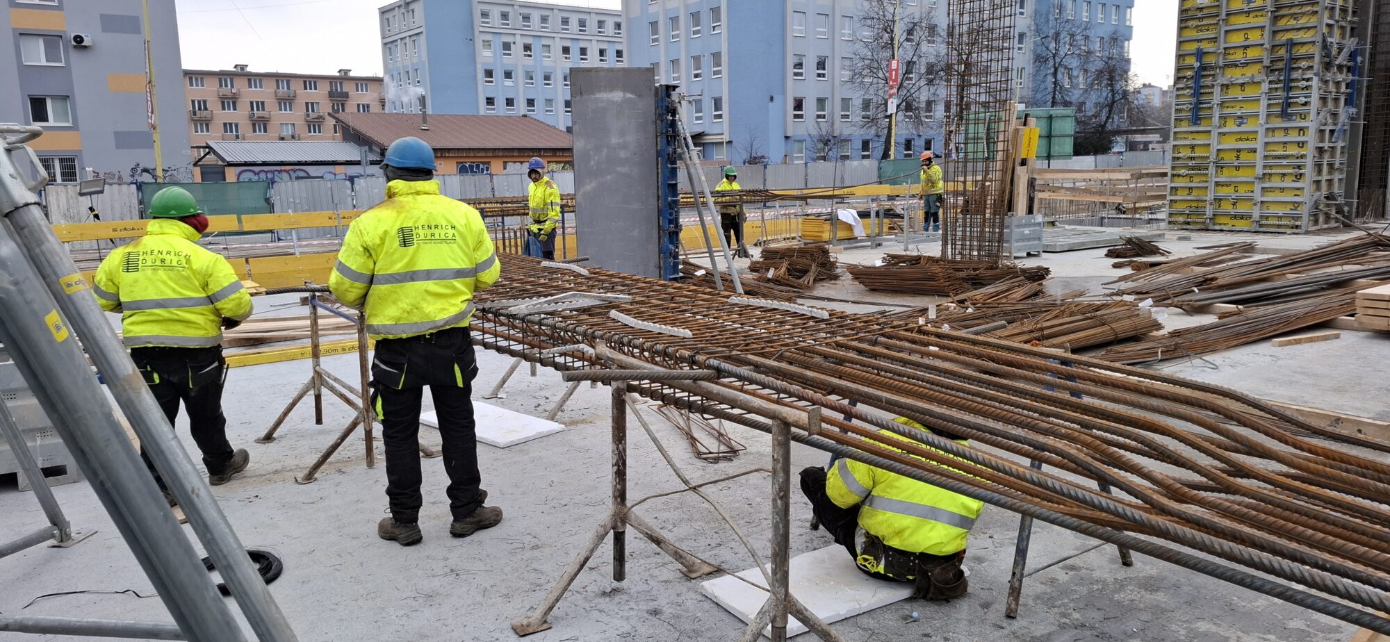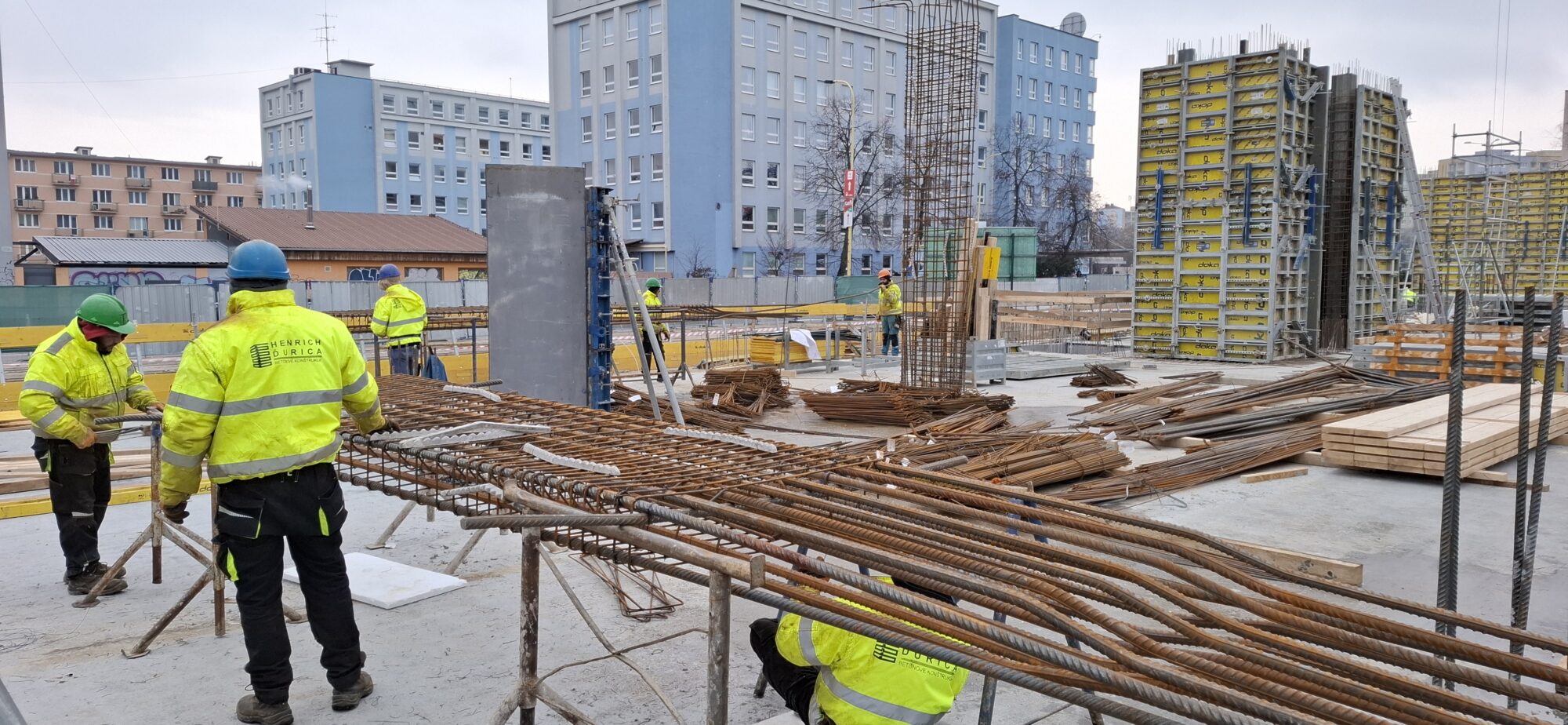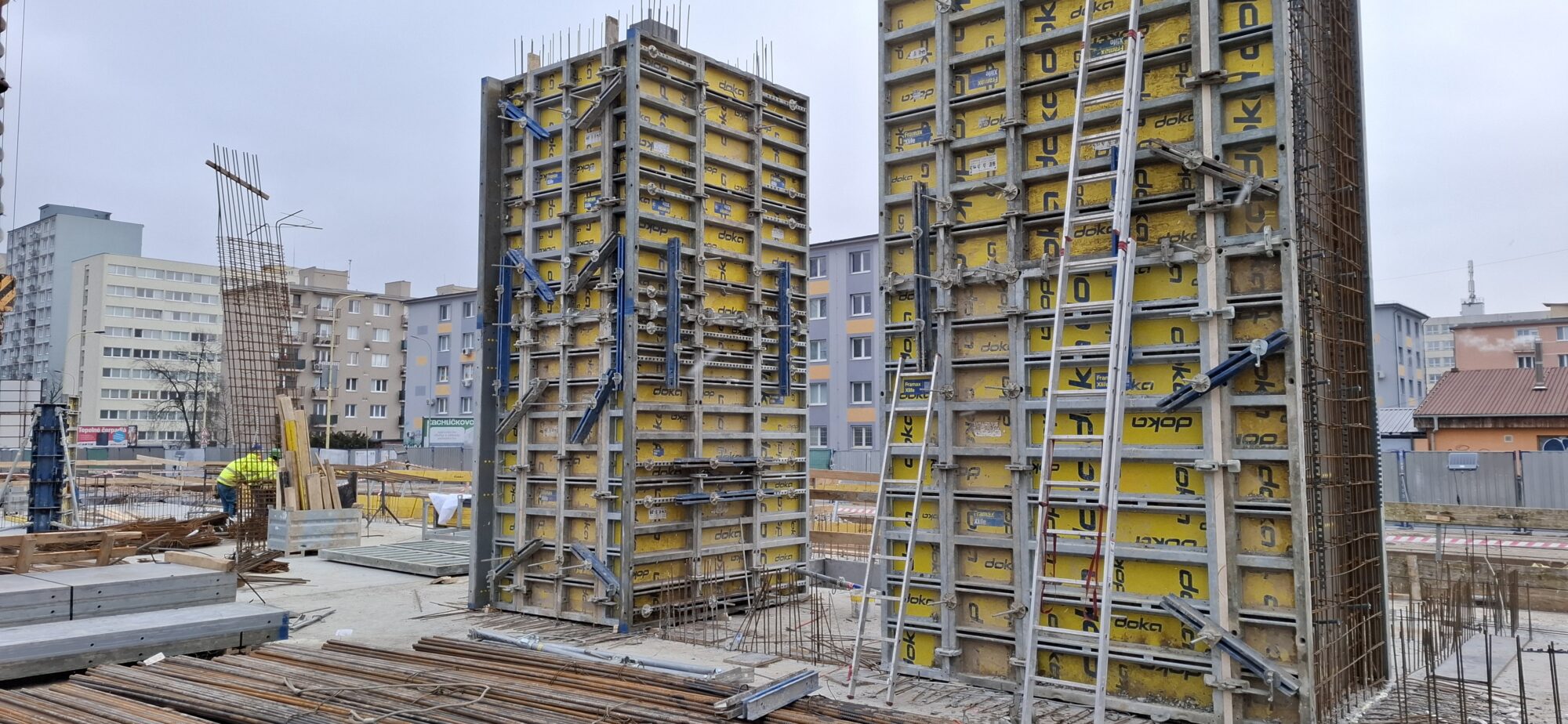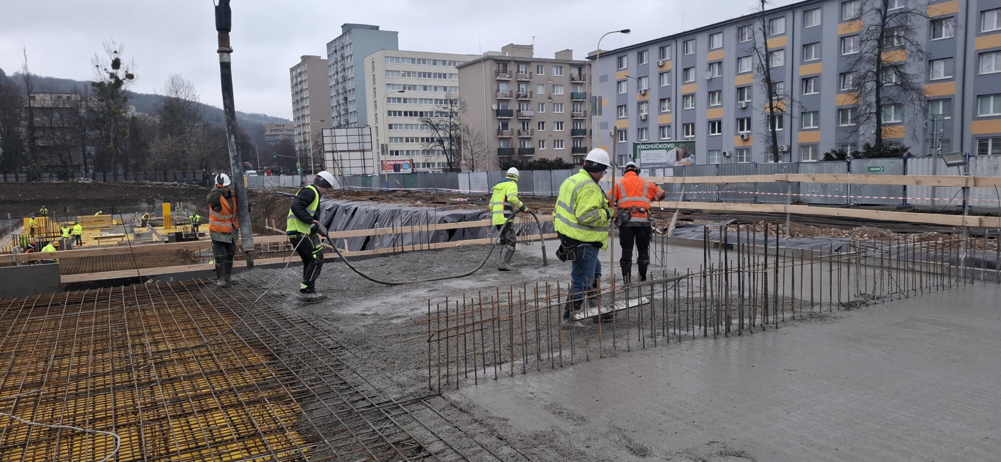 In Section A, concreting and reinforcement of the basement floor slabs are currently underway. On the lower levels, the gradual removal of slab formwork is in progress. In part of Section A, formwork and reinforcement works are also ongoing for the 5.2-metre-high walls of the first above-ground floor.