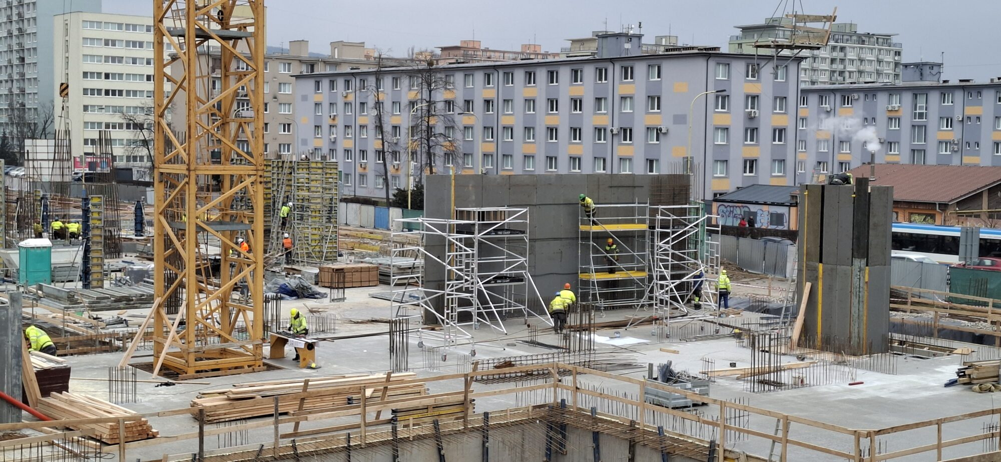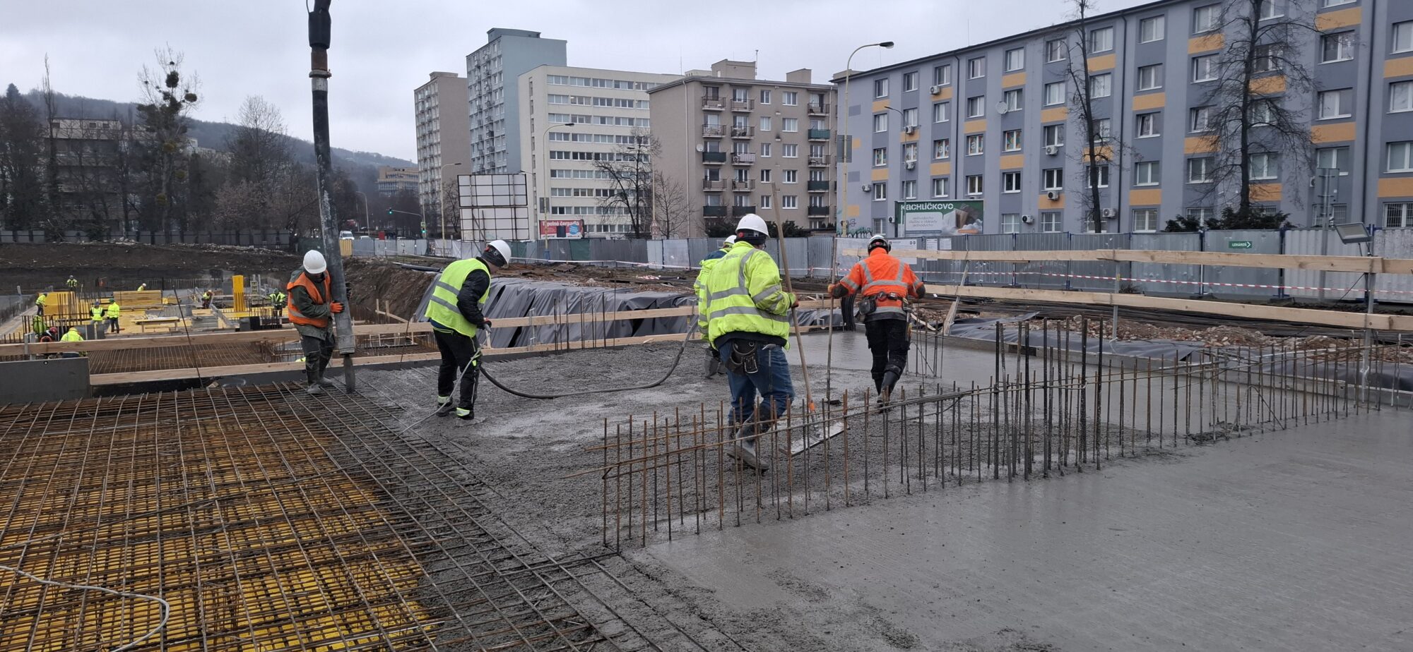 Na úseku B prebieha armovanie základových dosiek, zatiaľ čo na úseku C sa pripravuje zakladanie objektu.